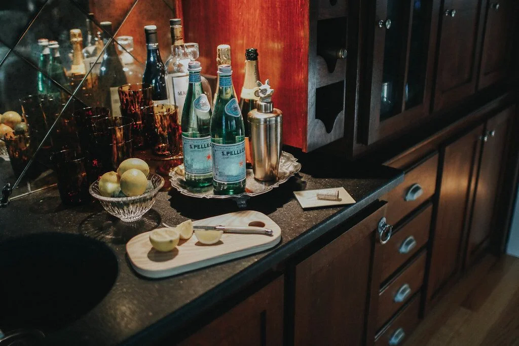 But if we're designing a space for a client where I know they'll want to entertain, I work to give them a little "diy bar" spot so hosting friends and family for impromptu or planned get-togethers is just that much easier.