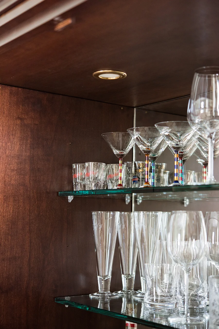 The goal, of course, is to be able to tuck away glasses, bottles, and other cocktail making supplies in a handy, but out-of-the-way spot.